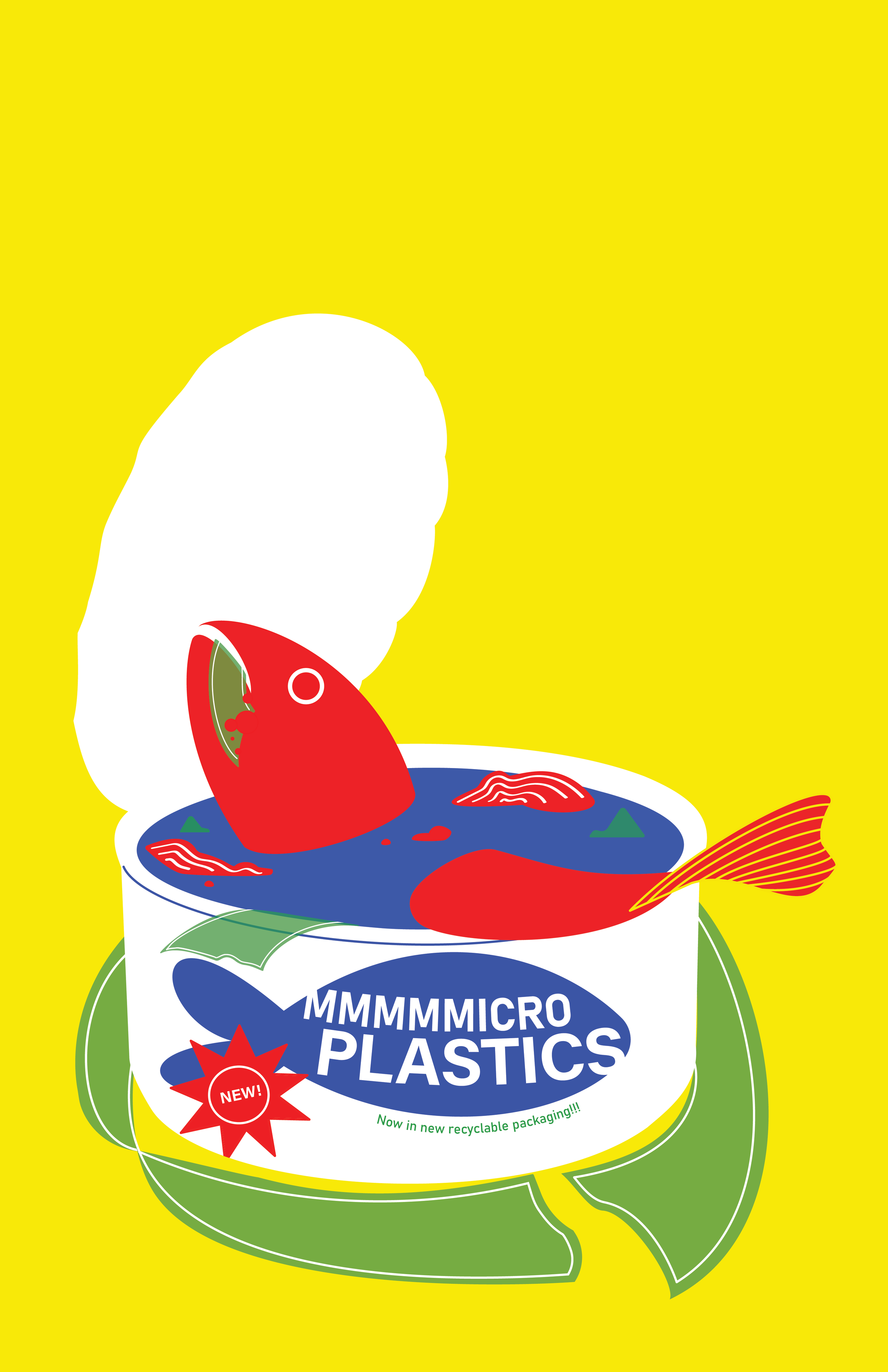 I wanted to make an ironic illustration, with a fish drowning in a tin can, choking on the same plastic waste the can is wrapped in.